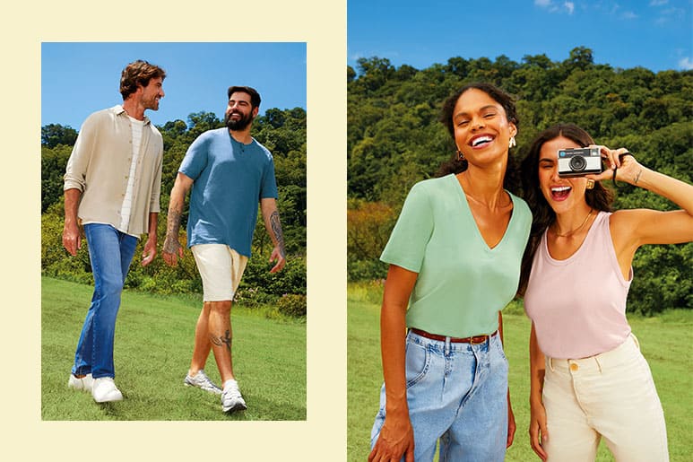Já não dá pra negar: a gente ama um bom básico, e fazemos de tudo pra você descobrir o quanto eles podem facilitar sua vida. Clique aqui e descubra toda a nossa diversidade de looks básicos, sempre com alta porcentagem de fibras naturais, caimentos confortáveis e muito estilo.
